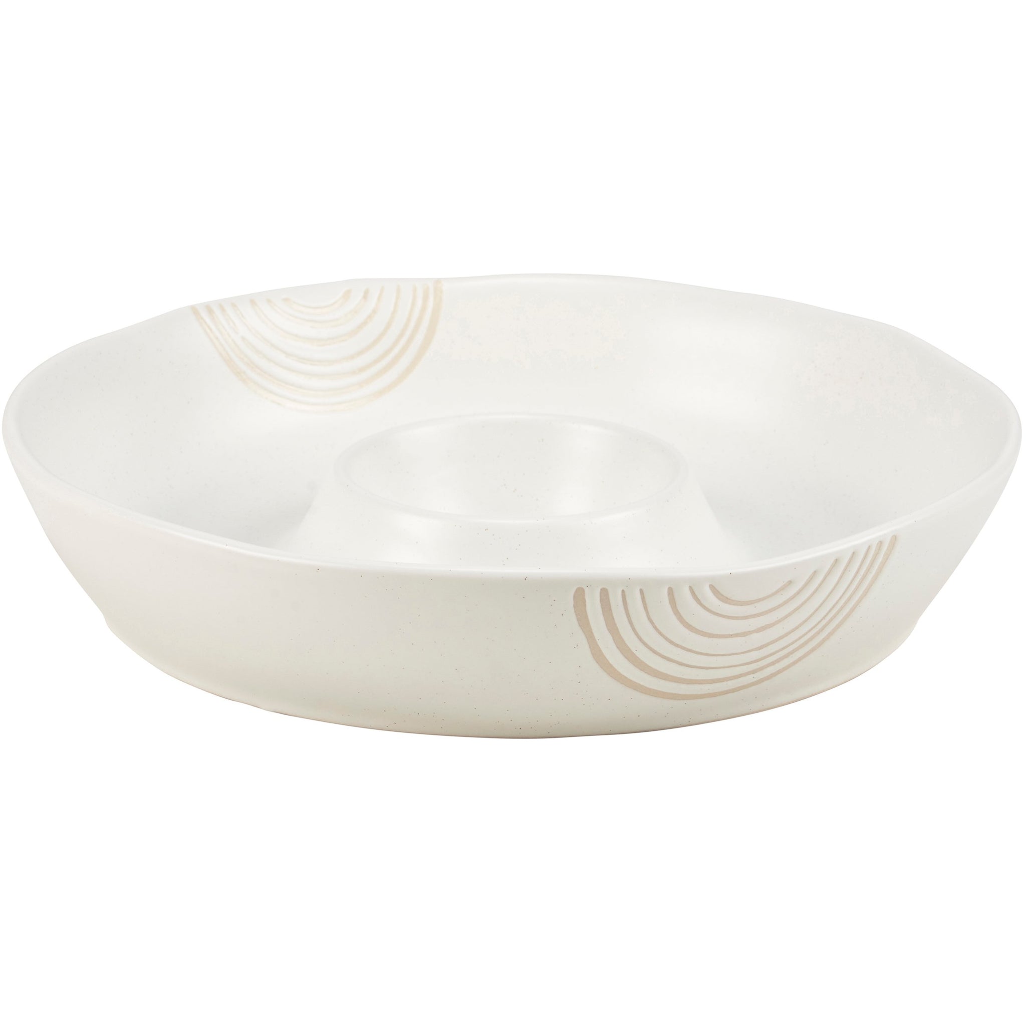 Entertain with ease and effortless style. Our Chip & Dip serving bowl is thoughtfully designed to keep your favorite snacks perfectly paired, with a generous outer bowl for chips, crackers, or veggies surrounding a center section made just right for dip. It’s a classic design that makes sharing simple and mess-free.